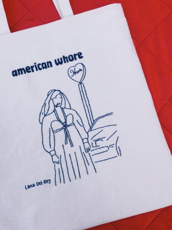 totebag de gabardina cruda de algodón bordada a mano